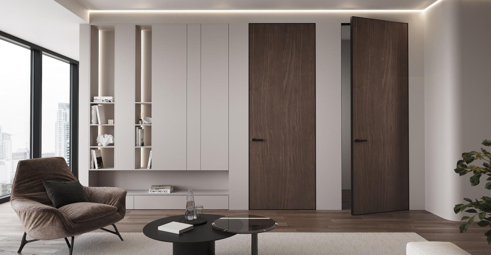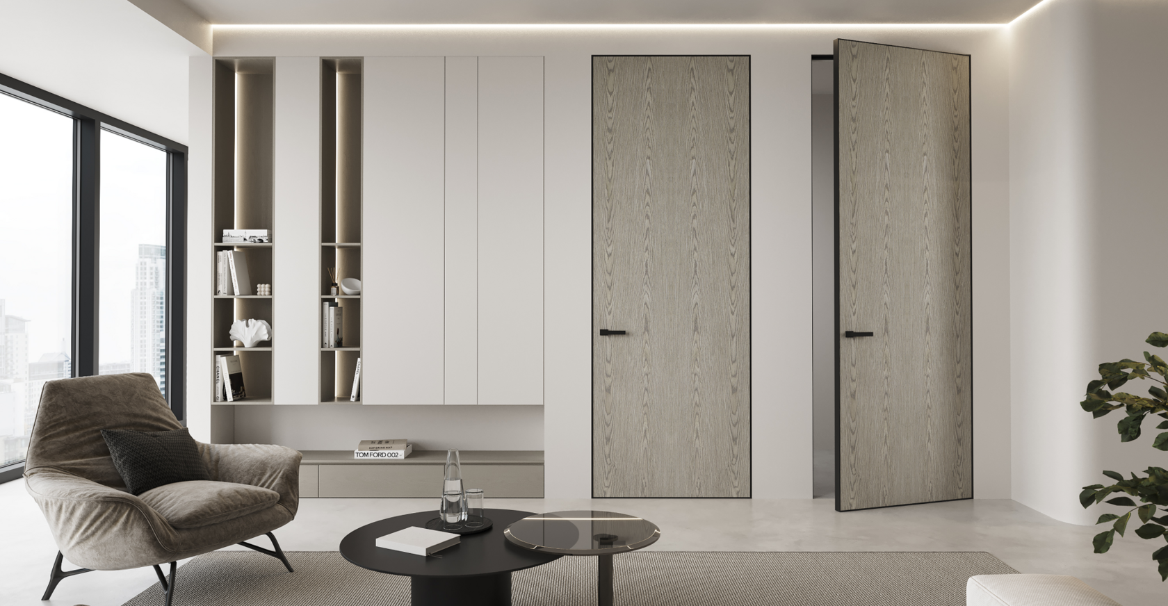 Profildoors открывает новую страницу ассортимента — межкомнатные двери из натурального шпона в коллекциях VT и VA с тонким алюминиевым молдингом.